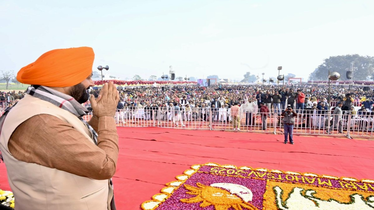 राखी गढ़ी में जन समूह को संबोधित करते हुए सीएम नायब सैनी।