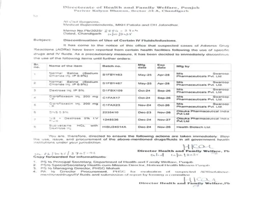• स्वास्थ्य विभाग ने इन दवाओं के स्टॉक की जांच और सील करने के निर्देश दिए हैं।